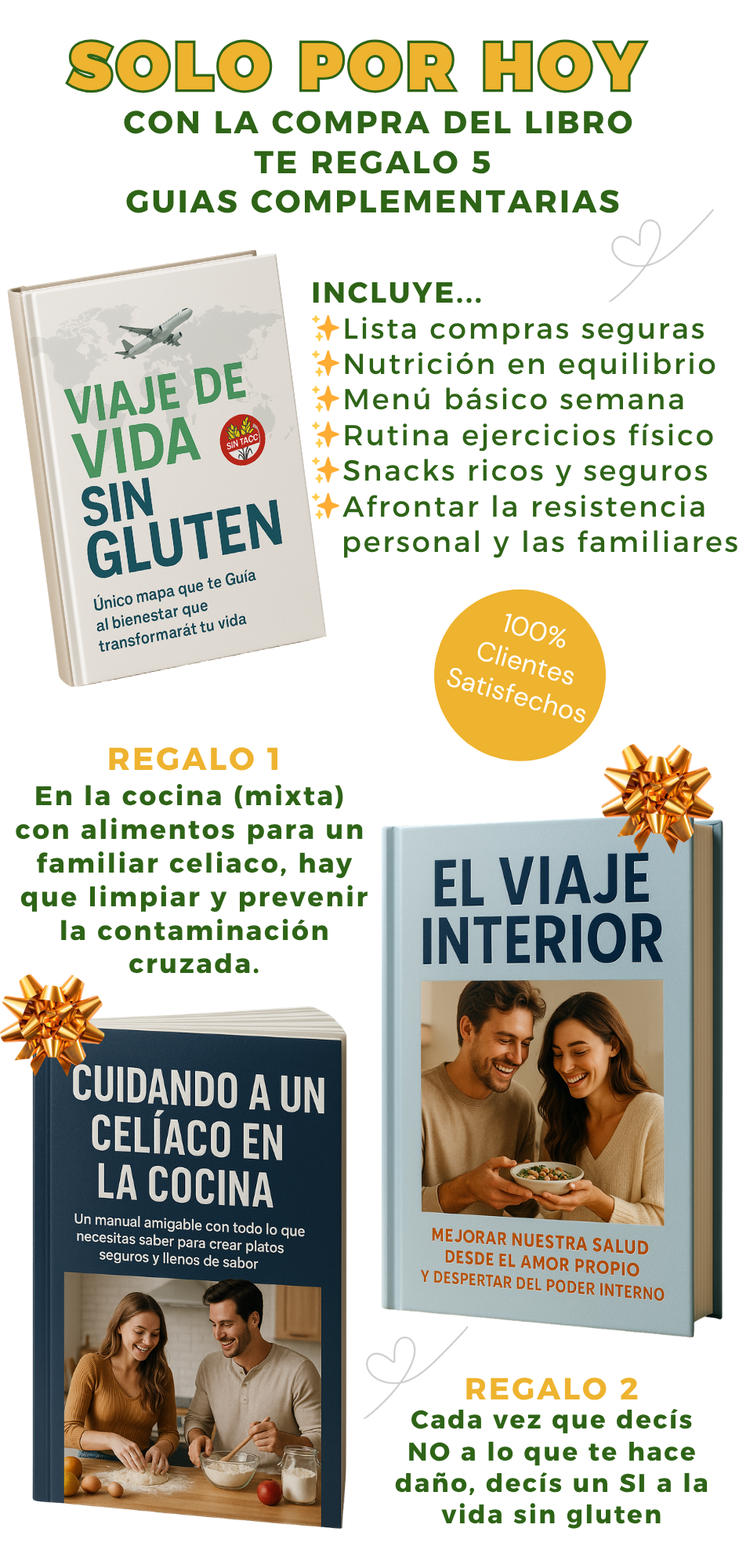 Sí. La diferencia está en su enfoque práctico y humano: no solo explica la teoría, también te da herramientas claras para el día a día (listas de compras, recetas rápidas, tips para restaurantes y hasta un ritual emocional de despedida del gluten). Es mucho más que información: es una guía para pasar de la confusión actual a la claridad de que hacer.